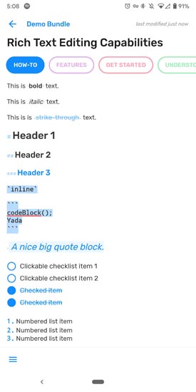 Bundled安卓版是一款新出的记笔记软件,目前在Google play商店上可以找到这款软件,还是测试的版本。虽然还为正式发行,但是这款Bundled安卓版还是很值得大家下载尝试的。首先Bundled安卓版的外观设计上就很简洁,非常符合记笔记的样子,功能强大,多种标记、标签应有尽有。其次,还可以书写Markdown的代码,各种搭配的高亮关键字也挺好用的。最后,有需的小伙伴可以下载体验哦。