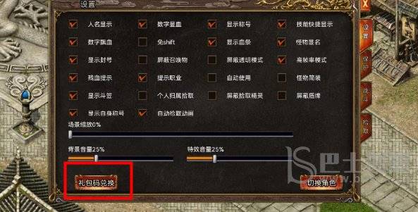 3、在设置功能页面的左下角,我们可以找到【礼包码兑换】入口。